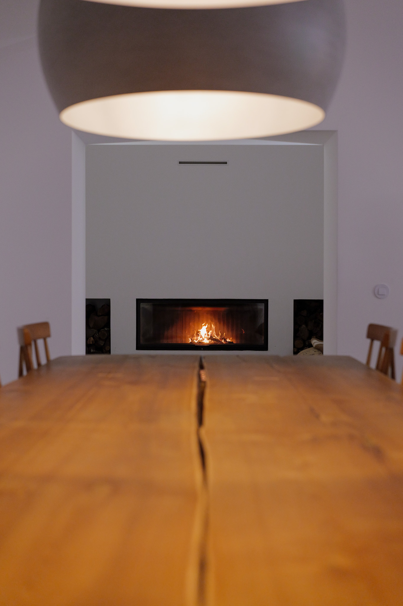 Strakke lijnen, zachte tinten en natuurlijke materialen vormen de basis. Hier geen koel minimalisme, eerder een warme eenvoud. Hout, keramiek, linnen… Designmeubels staan losjes in de ruimte; kunst en objecten zijn zorgvuldig gekozen. De twee gezamenlijke livings zijn van die plekken waar je vanzelf neerstrijkt – boek erbij, glas wijn in je hand, niets meer nodig.