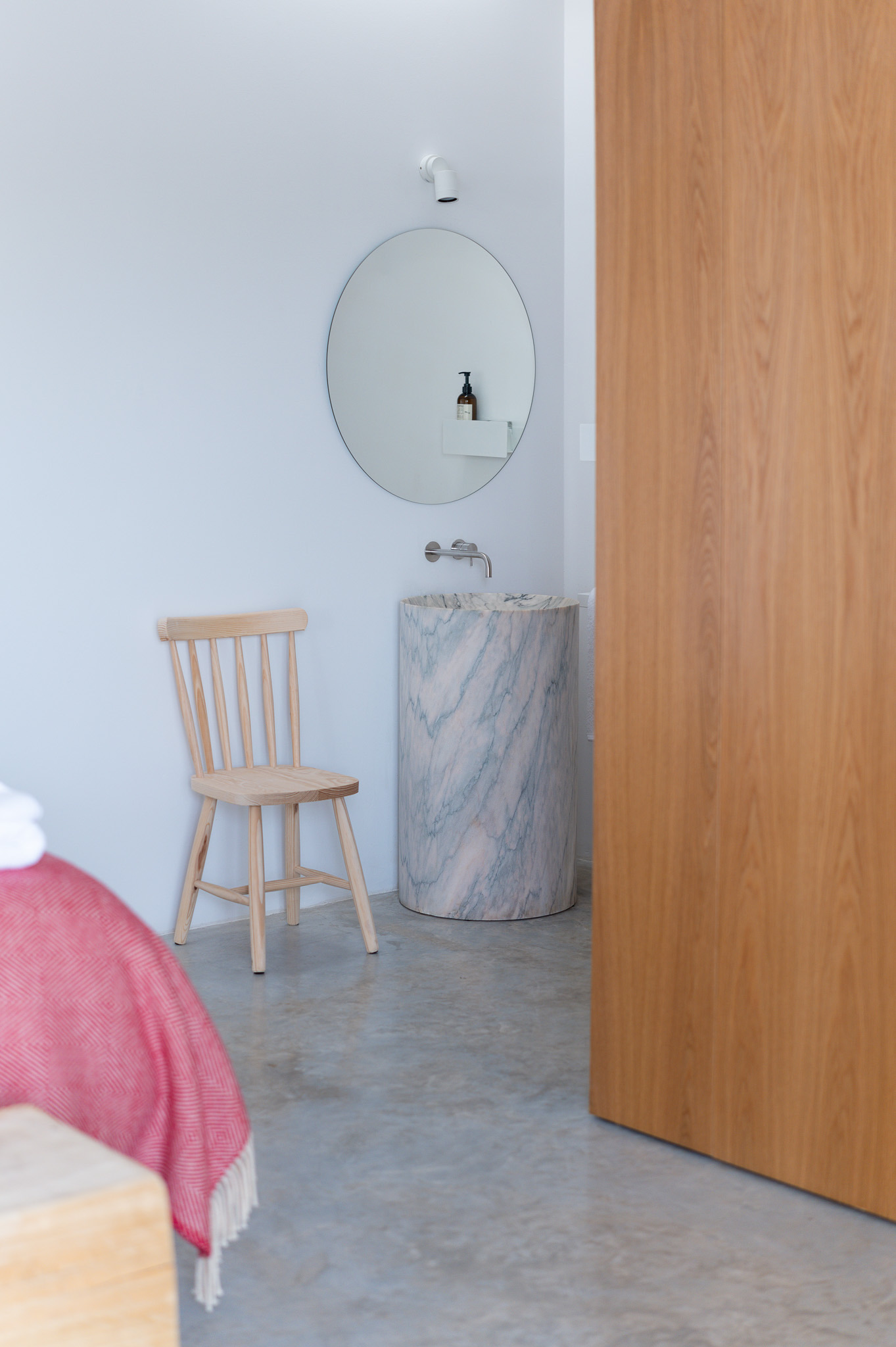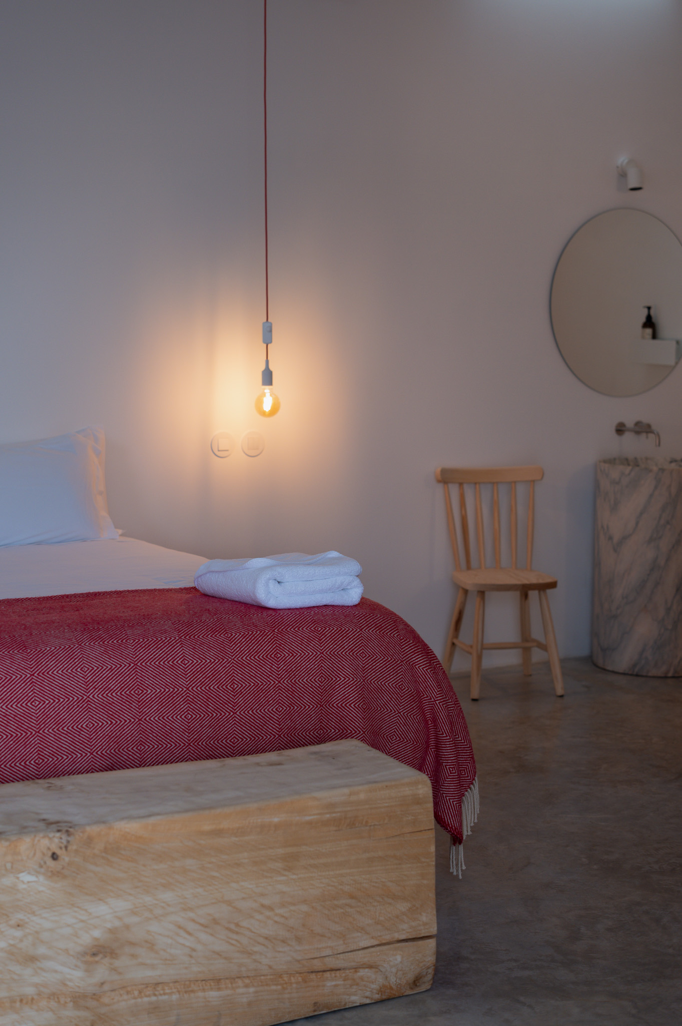De acht suites zijn rustig en intiem, elk met een eigen terras. Sommige vangen het eerste ochtendlicht, anderen juist die lange, zachte avonden. Eén suite heeft zelfs een bad buiten, onder de open lucht. Alles draait hier om één ding: het landschap laten spreken.