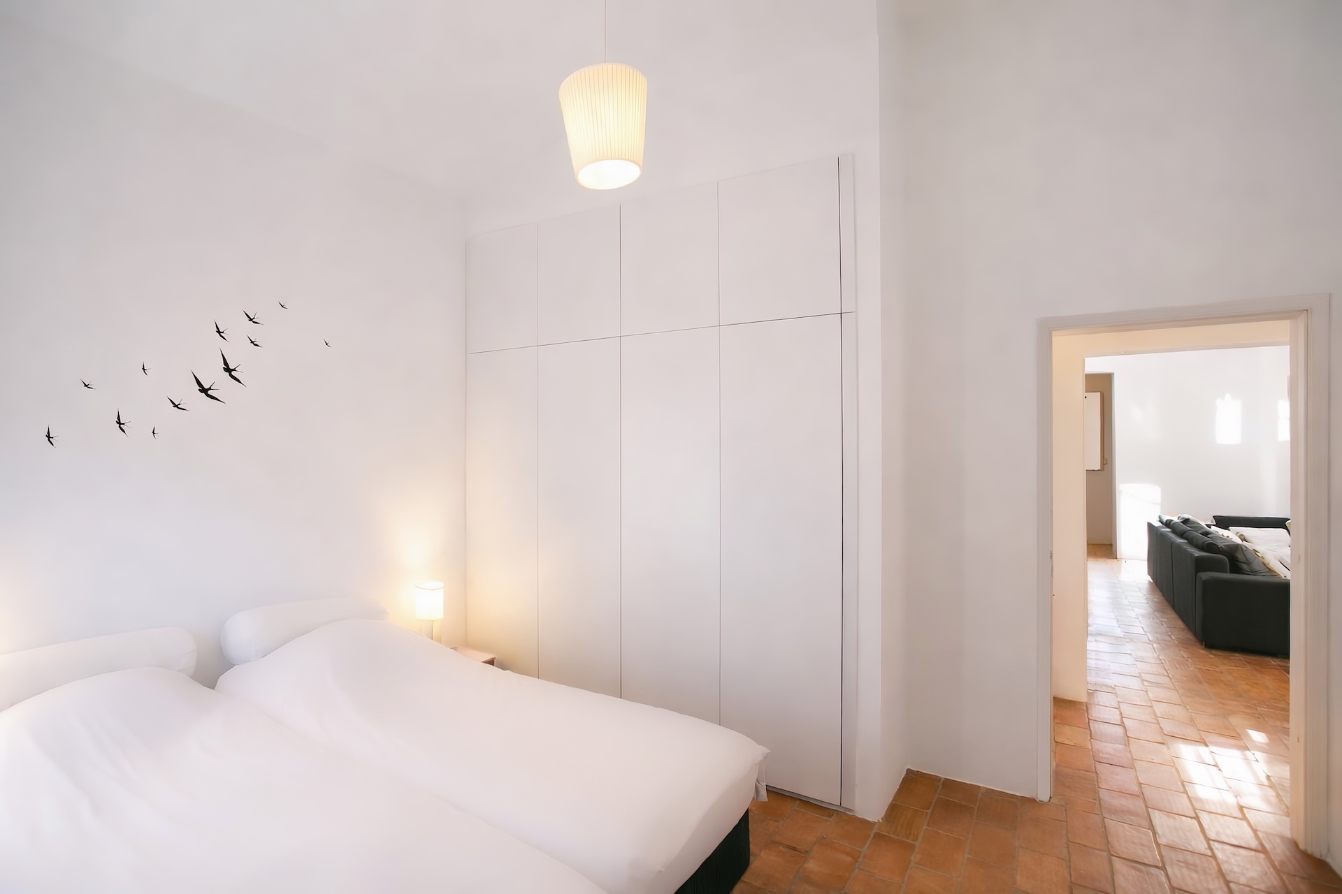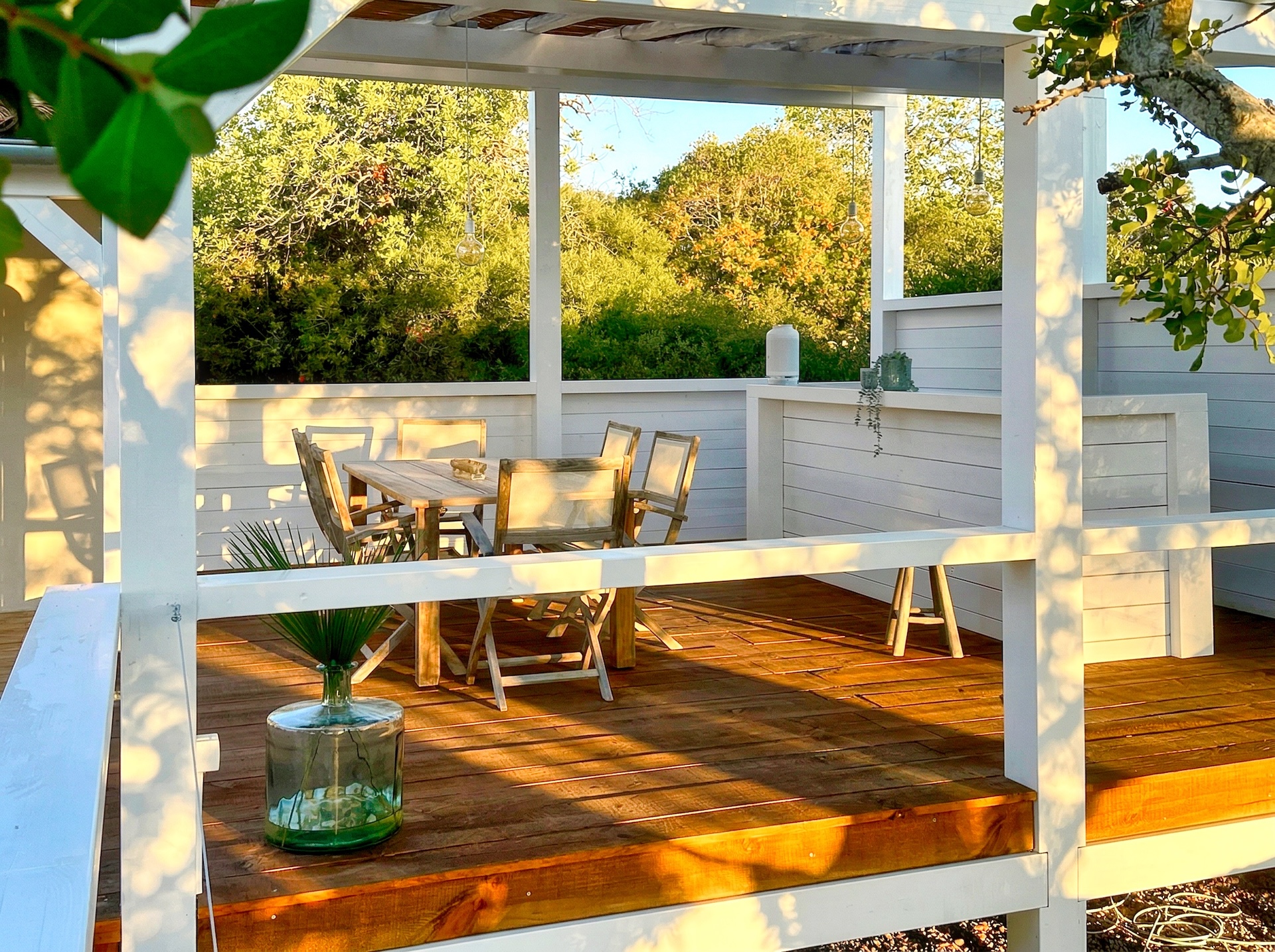 Binnen is het licht en comfortabel, precies wat je zoekt voor een ontspannen vakantie met familie of vrienden. Een ruime living met open haard, een open keuken en grote deuren die je zo naar buiten trekken. Drie slaapkamers (voor samen 7 personen), twee badkamers, overal airco, én snelle wifi, dus ook prima als je hier stiekem nog even wat werk wilt meepakken.