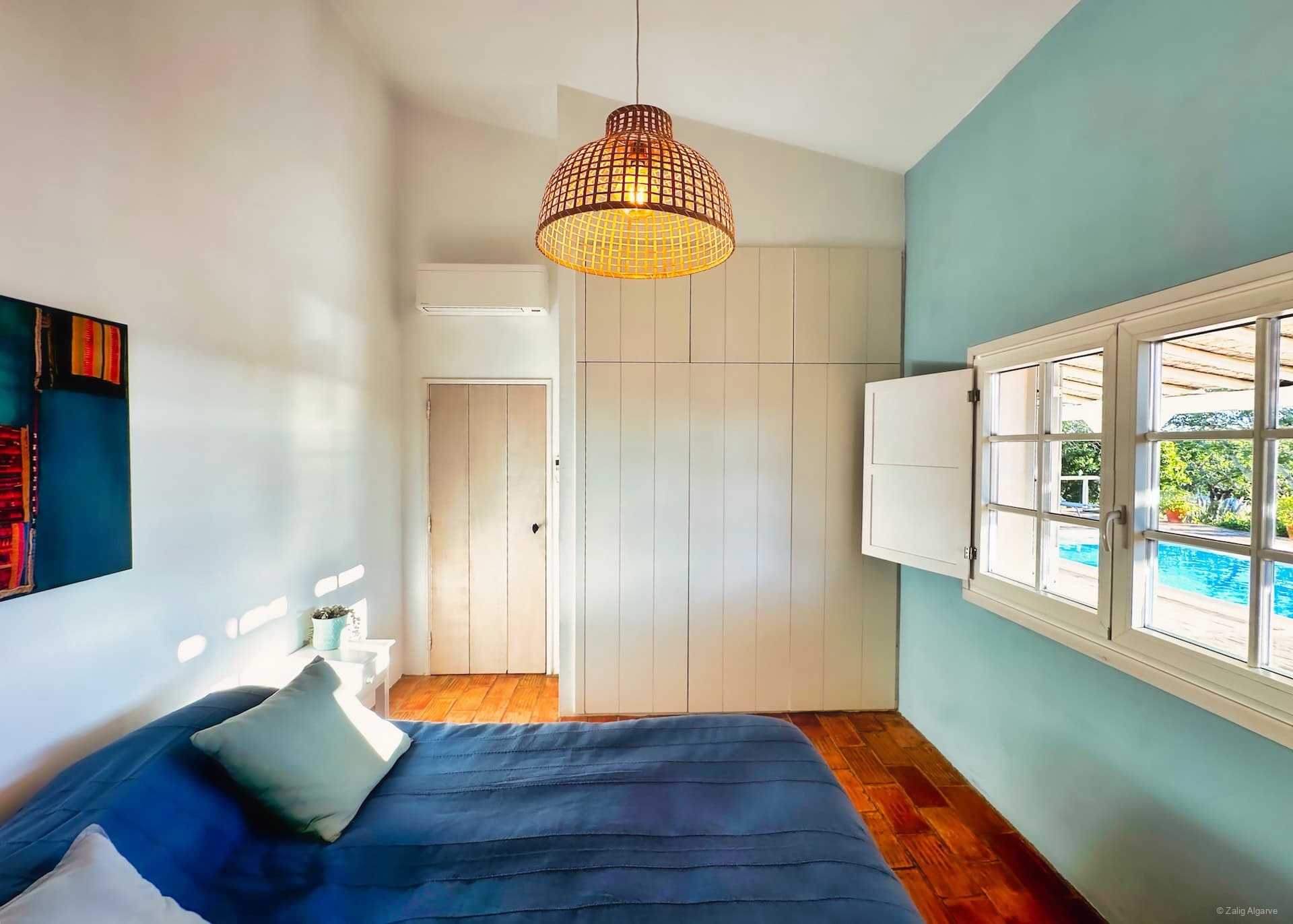 In de heuvels bij Santa Bárbara de Nexe (Algarve) ligt Andorinhas do Mar, zo’n vakantiehuis waar je even van de wereld bent. Je rijdt een zandweg op; de poort gaat open… en daar ligt het, verscholen in het groen. Met plaats voor 7 personen, uitzicht tot aan de zee en overal rust en privacy zit je hier helemaal goed. En het fijne? Binnen twintig minuten sta je gewoon met je voeten in het zand.