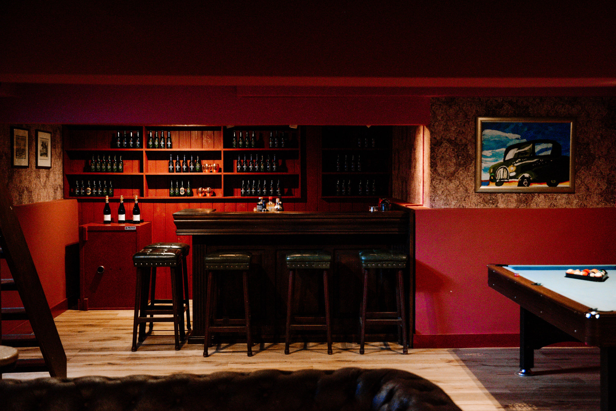 Het leven vieren, dat doe je in de bruine kroeg die in de kelder van het landhuis verborgen zit. Maak je op voor een avondje poolen en gin-tonics drinken nadat de kleintjes in bed zijn gelegd. De volgende dag zweet je die kater gewoon uit in je eigen gym. En pssst, wist je dat er in de kroeg ook een PlayStation staat voor de kidsmannen? Vinden ze vast niet erg.