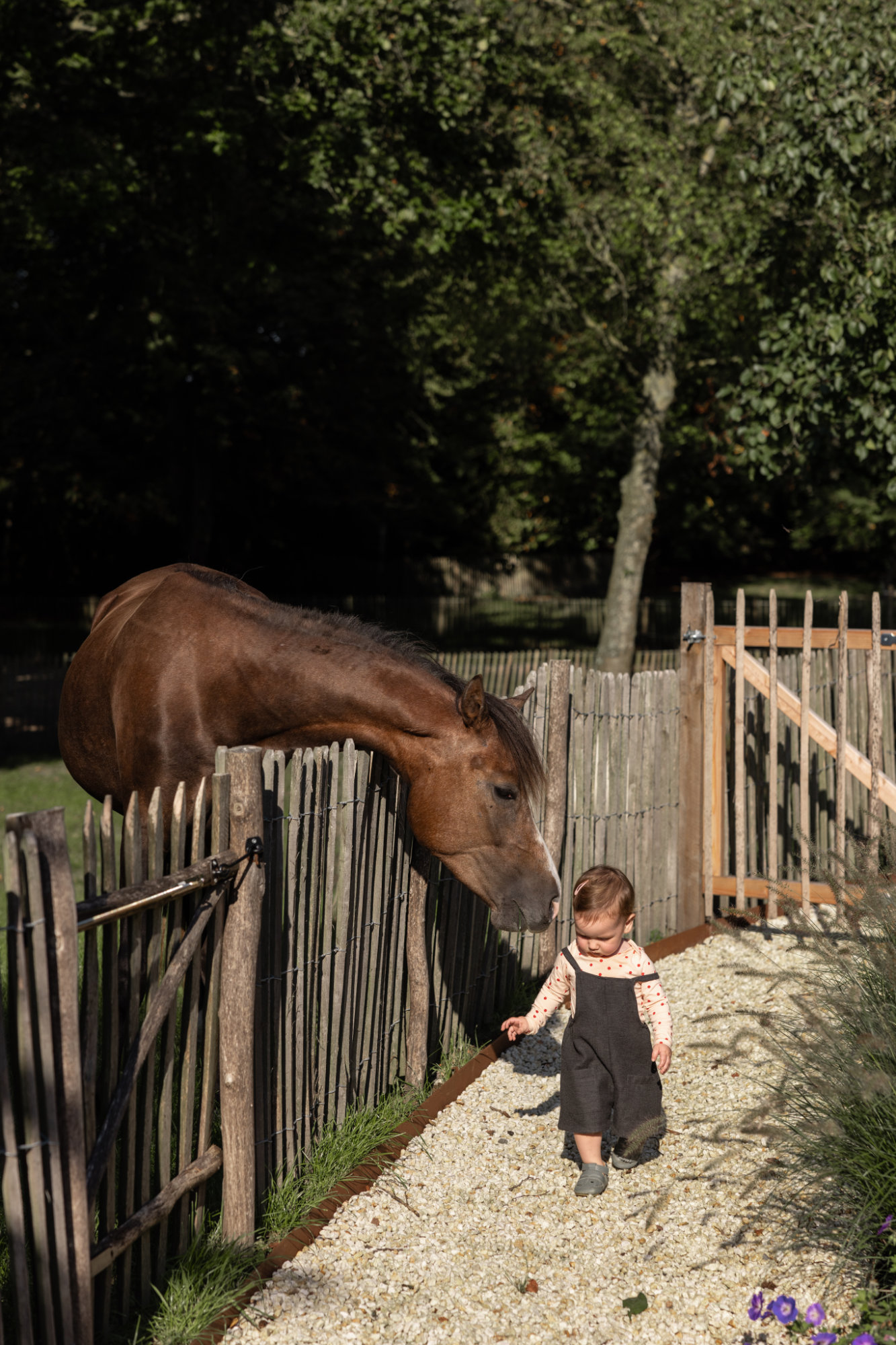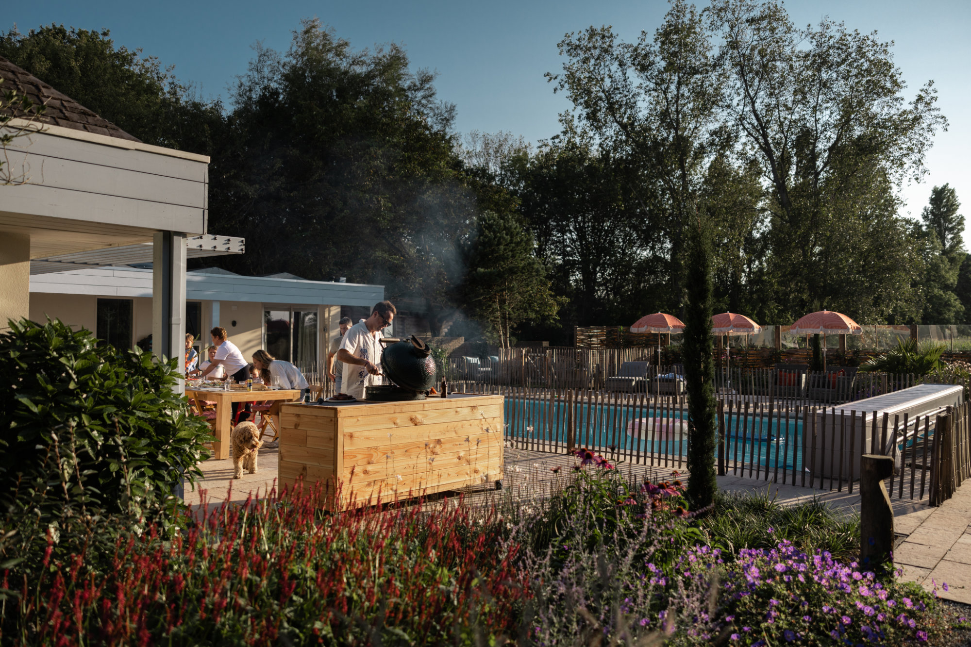 Als het even kan, breng je de dagen buiten door. Het landhuis wordt aan de ene kant ingesloten door het bos en heeft aan de andere kant prachtige vergezichten met de mooiste zonsondergang. Steek het kampvuur aan of duik nog eens in het zwembad. Het zwembad en de tuin zijn volledig omheind, wel zo fijn voor de mini’s. De grote kids vermaken zich op de trampoline terwijl jij de Big Green Egg aansteekt. Vergeet de paardjes geen aai over de bol te geven. Vinden ze leuk, en de kids ook!