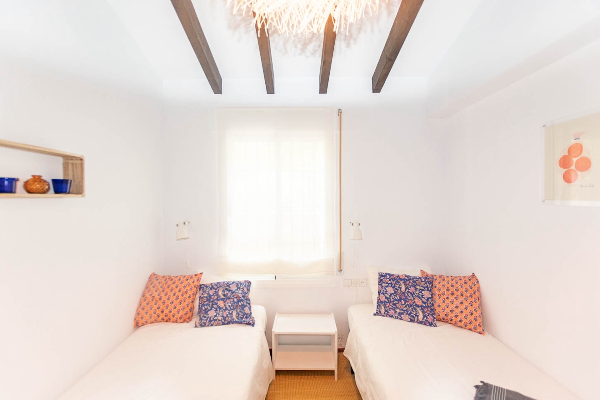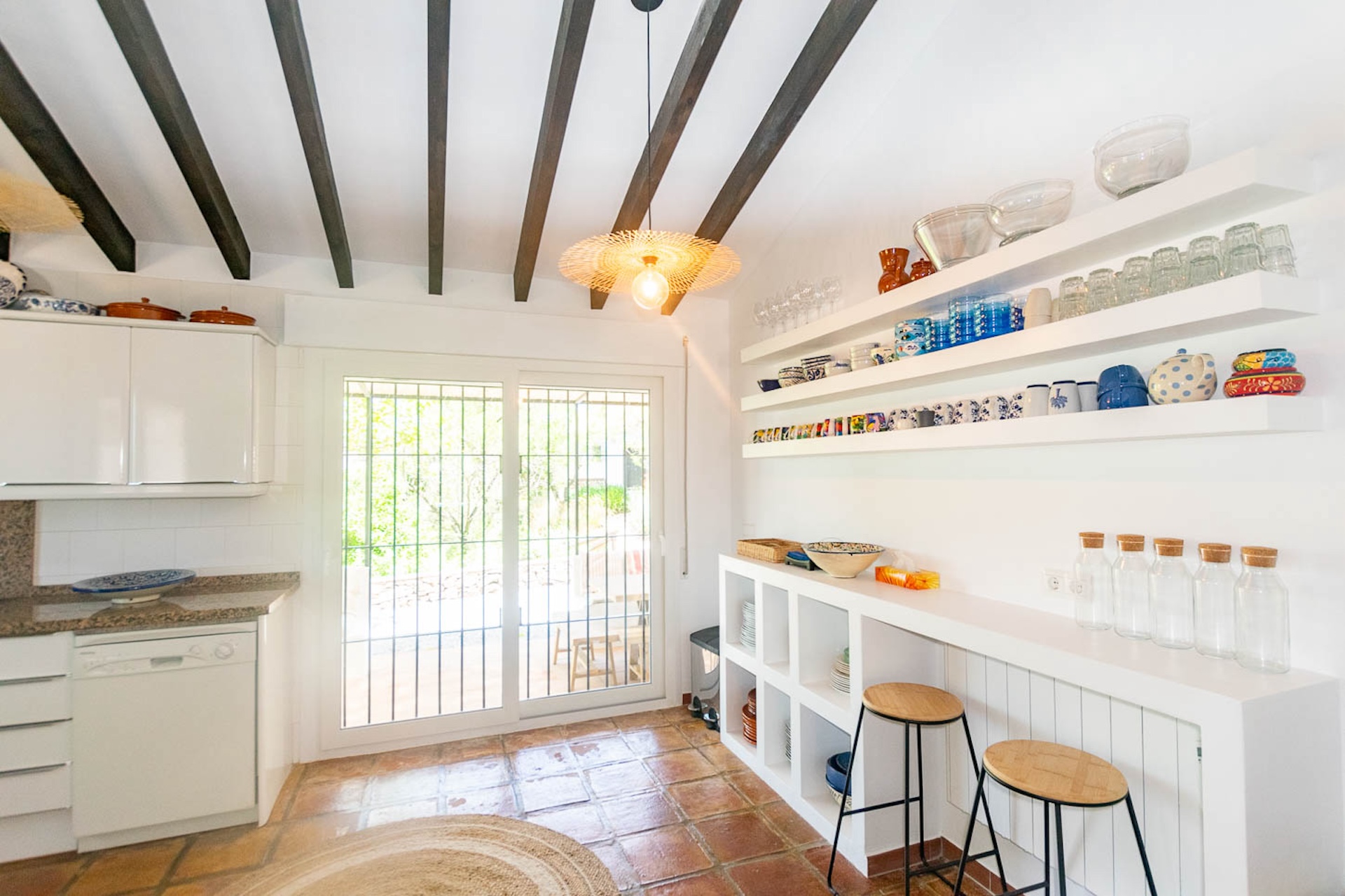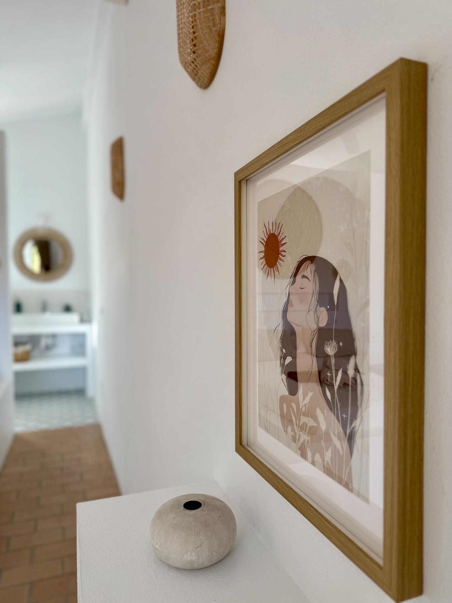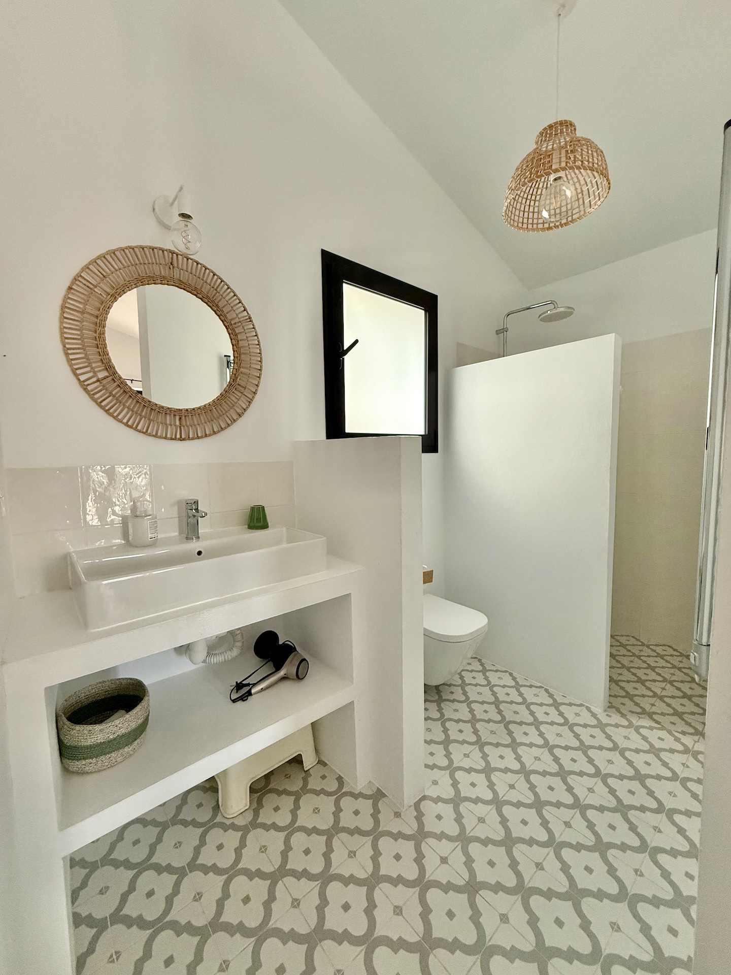 Casa Moum voelt meteen goed: authentiek en verfijnd tegelijk. Oude elementen en moderne lijnen lopen moeiteloos in elkaar over. Witte muren, terracotta vloeren, natuurlijke materialen en zwarte kozijnen die alles net dat beetje extra geven. Binnen is het licht en rustig, met warme tinten, zachte stoffen en hier en daar een vleug kleur – sfeervol, comfortabel en helemaal in balans.