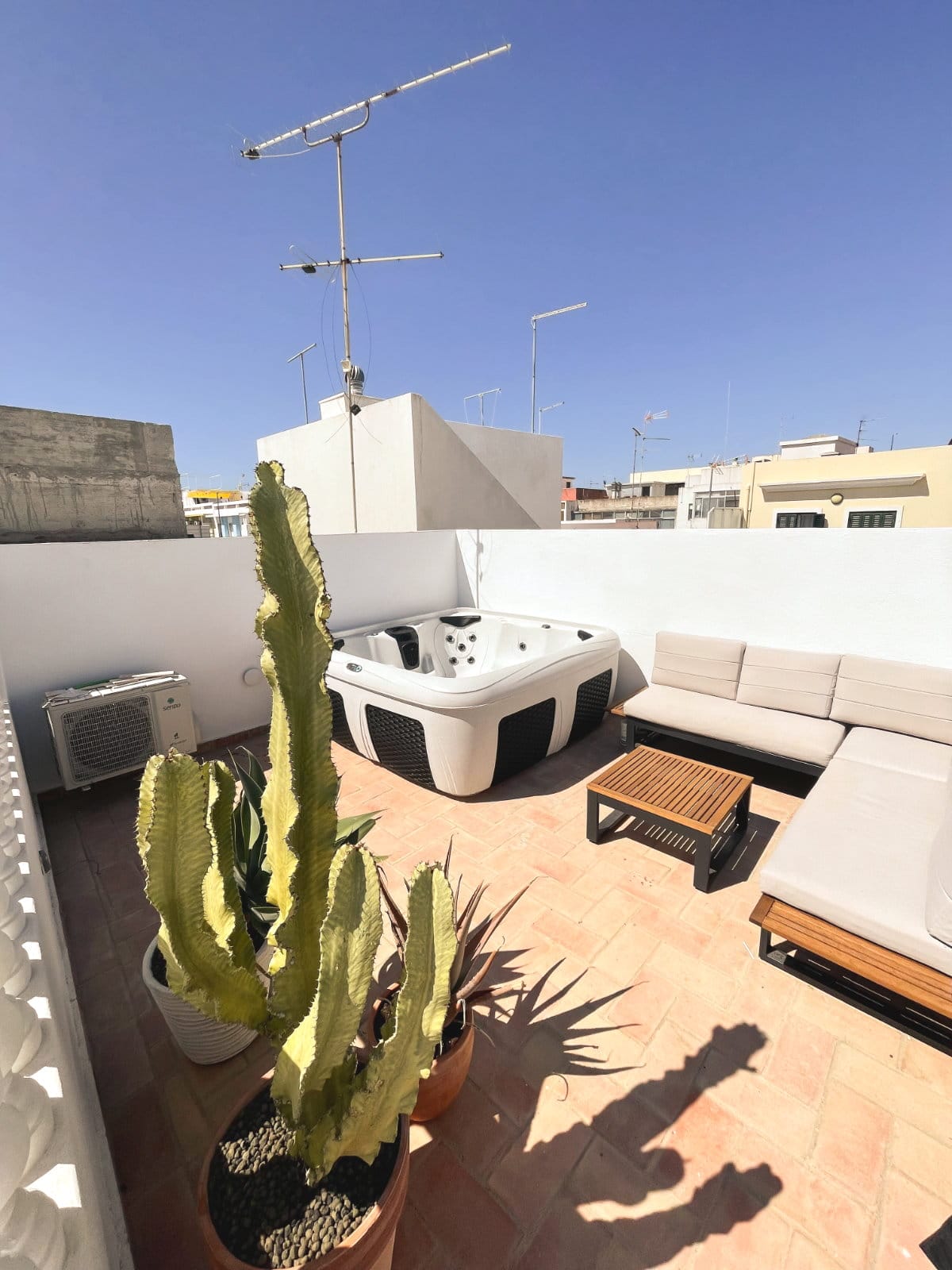 Bij Casa Perto do Mar ontbreekt het je aan helemaal niets. Alles is even mooi, van de meubels tot de accessoires en van het linnengoed tot het servies. Allemaal met zorg uitgezocht. Twee slaapkamers (één met tweepersoonsbed en één met twee losse boxsprings), twee badkamers en een slaapbank in de woonkamer voor het kroost, als je met meer dan vier personen komt. Op het terras op de eerste verdieping zit je heerlijke aan de eettafel bij de barbecue. Een fijne plek voor een zonnig begin van de dag of om lekker lang te tafelen. Op het dakterras vind je een loungeset en …tatadaaaaa….een jacuzzi. Wat een feest! Bubbelen maar!