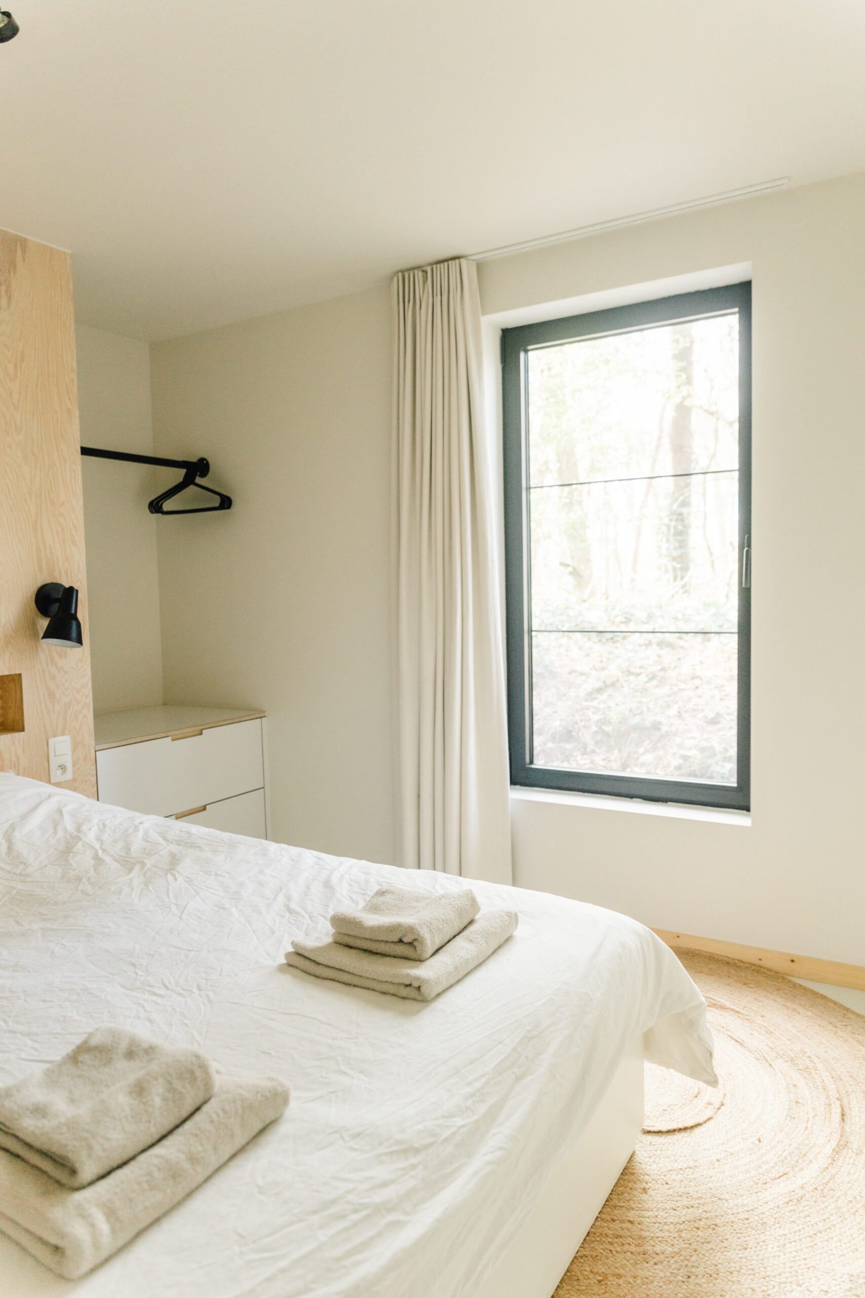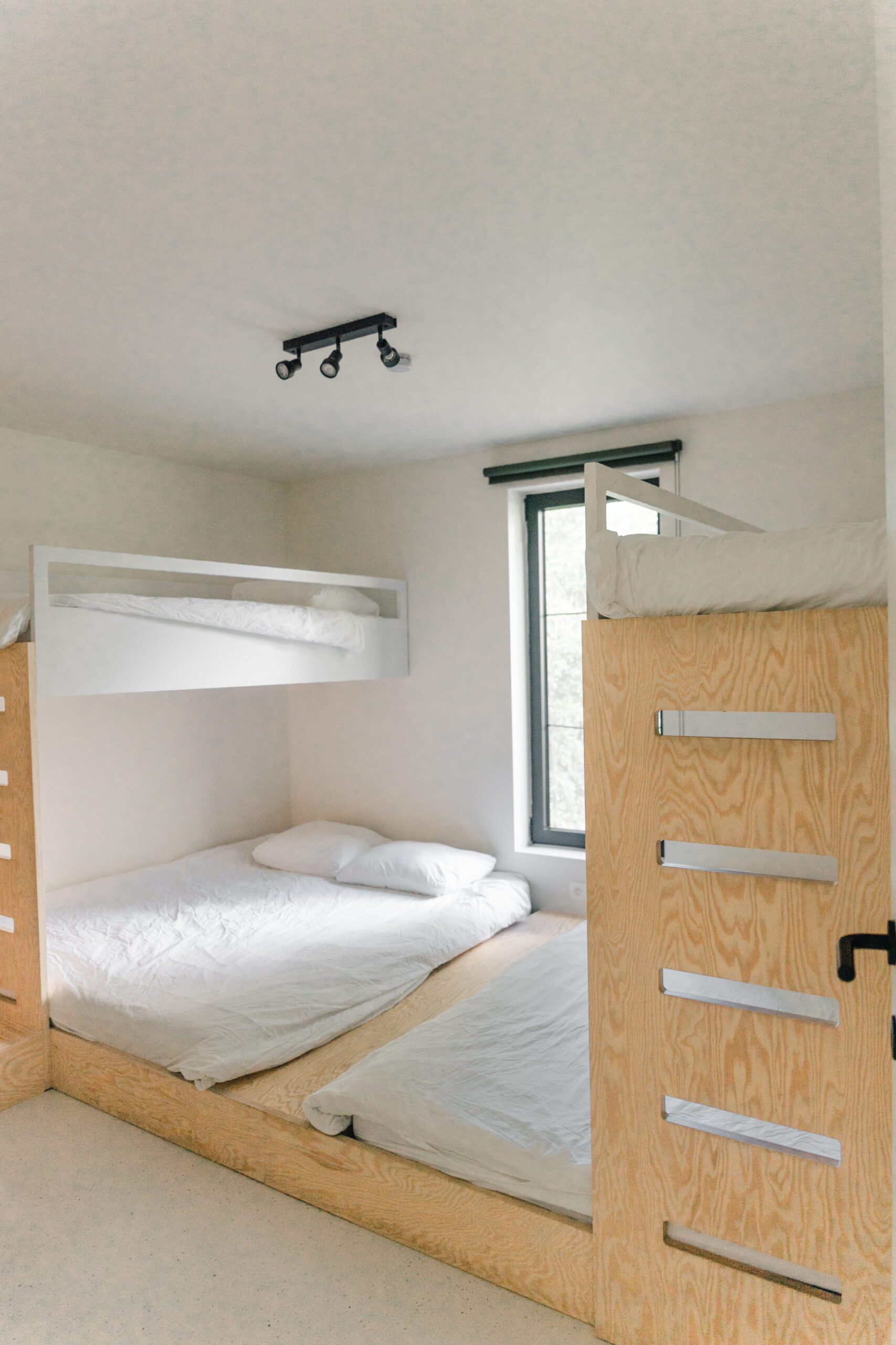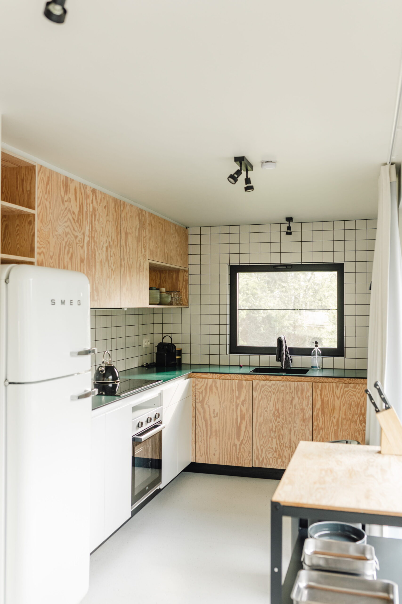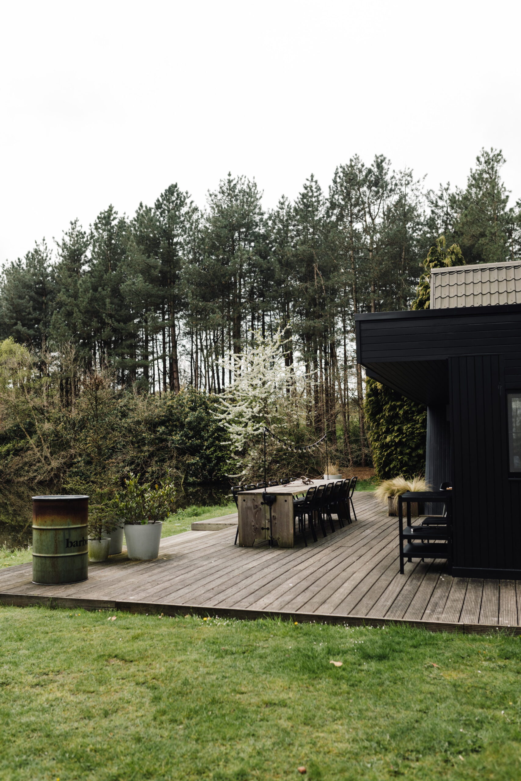 Binnen in de cabin is het knus en mooi. Veel hout, zwart en groen. Het matcht totaal met z’n omgeving. Er zijn vier slaapkamers en twee badkamers, een gezellige woonkamer die vraagt om spelletjesavonden en een keuken waar je alles vindt wat je nodig hebt voor een lekkere maaltijd. Of, je steekt de barbecue aan en geniet nog wat langer buiten. De lichtjes buiten maken het sfeervol en knus.