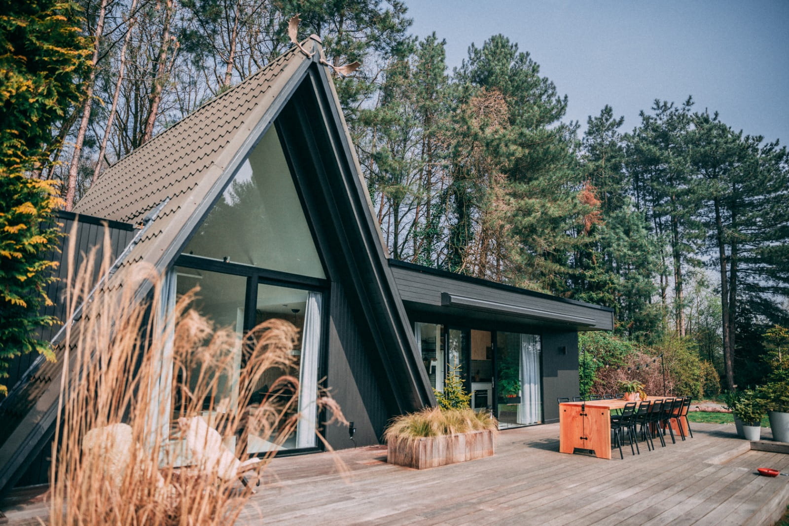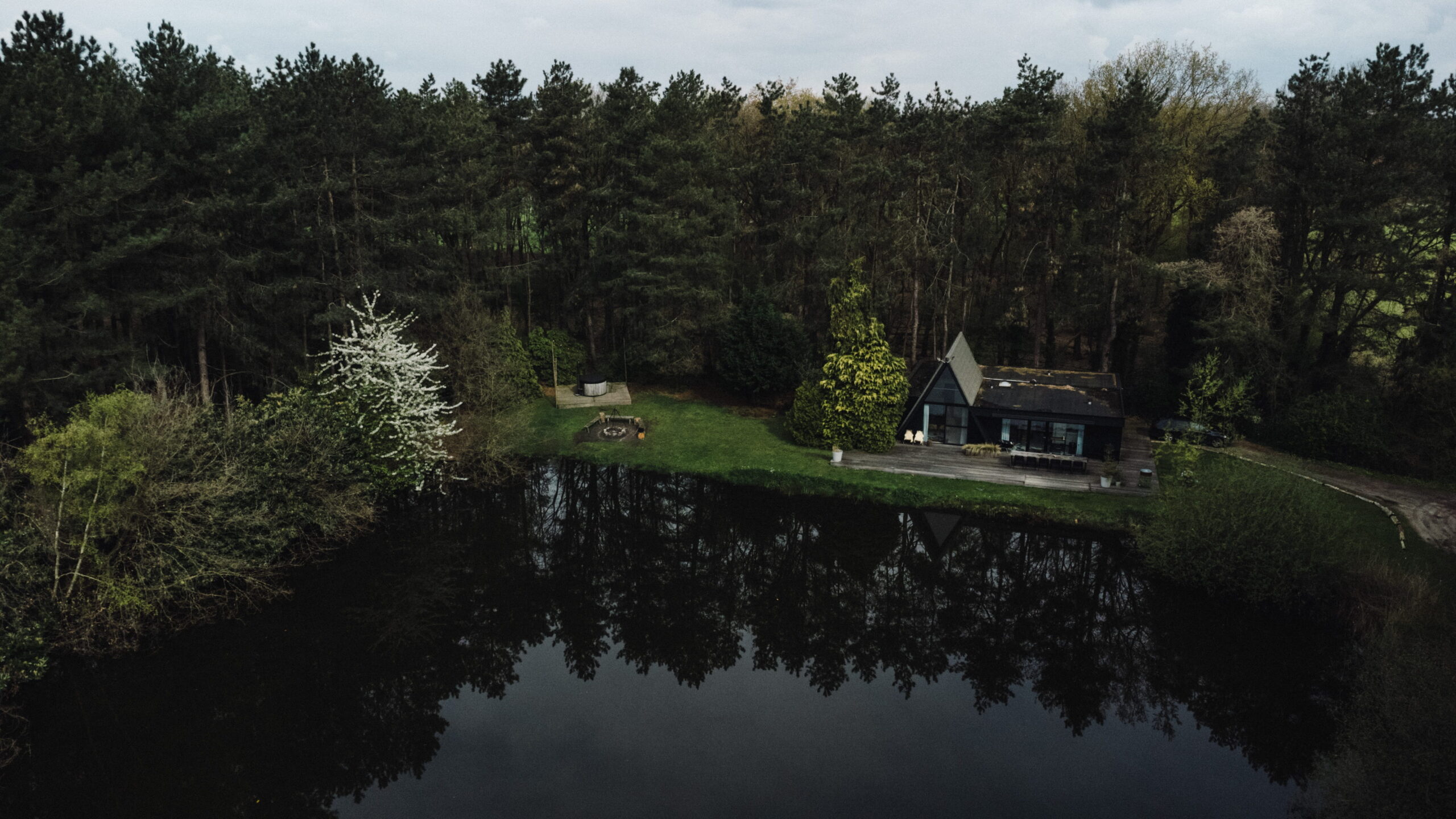 De A-frame cabin Dammhus vind je in de meest idyllische setting denkbaar. Picture this: een knus en uniek huis met een groot terras met lichtjes , pal aan een vijver, omringt door bomen. Hier logeer je met 12 personen waarvan max. 10 volwassenen.
