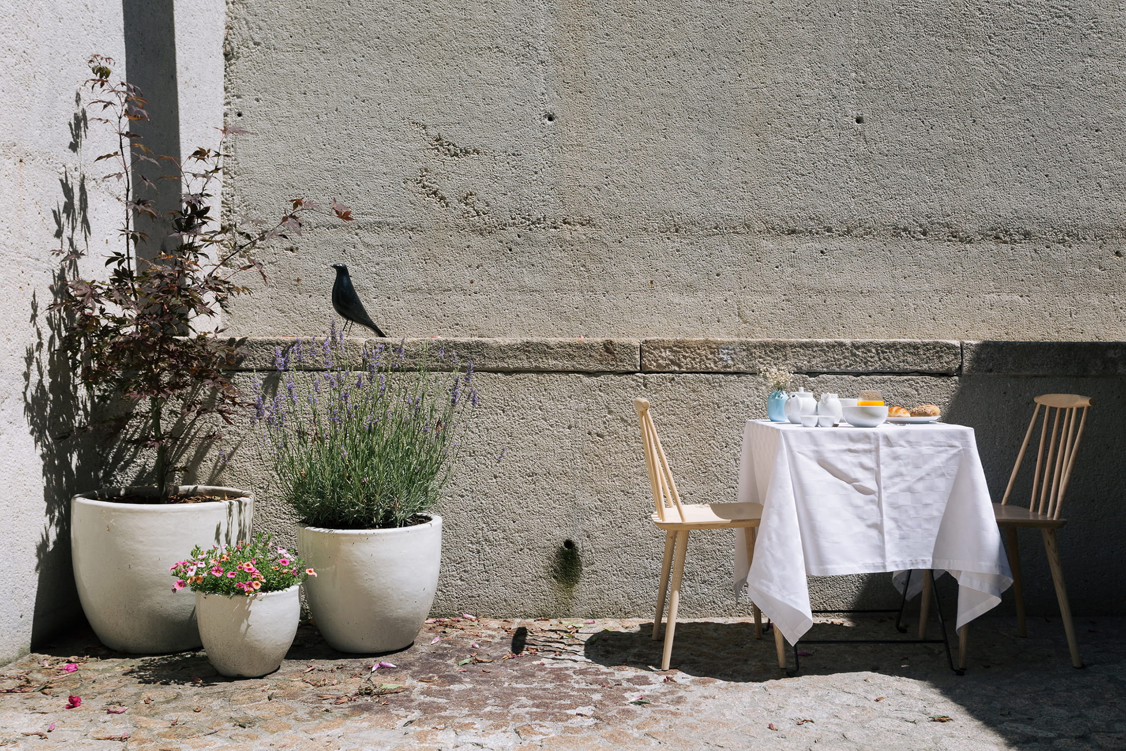 Acht kamers met airco – sommige met een bad – voor twee of drie personen. Vier kamers hebben uitzicht op de rivier, de andere vier op de tuin van Duas Portas. Het ontbijt – inbegrepen – wordt geserveerd in de ontbijtkamer of in de tuin. Er is een wijnbar, er zijn fietsen en als je wilt kun je gebruik maken van de babysit-service. De service in Duas Portas is grandioos. Vraag vooral om tips voor leuke restaurantjes. Je wordt er blij van.