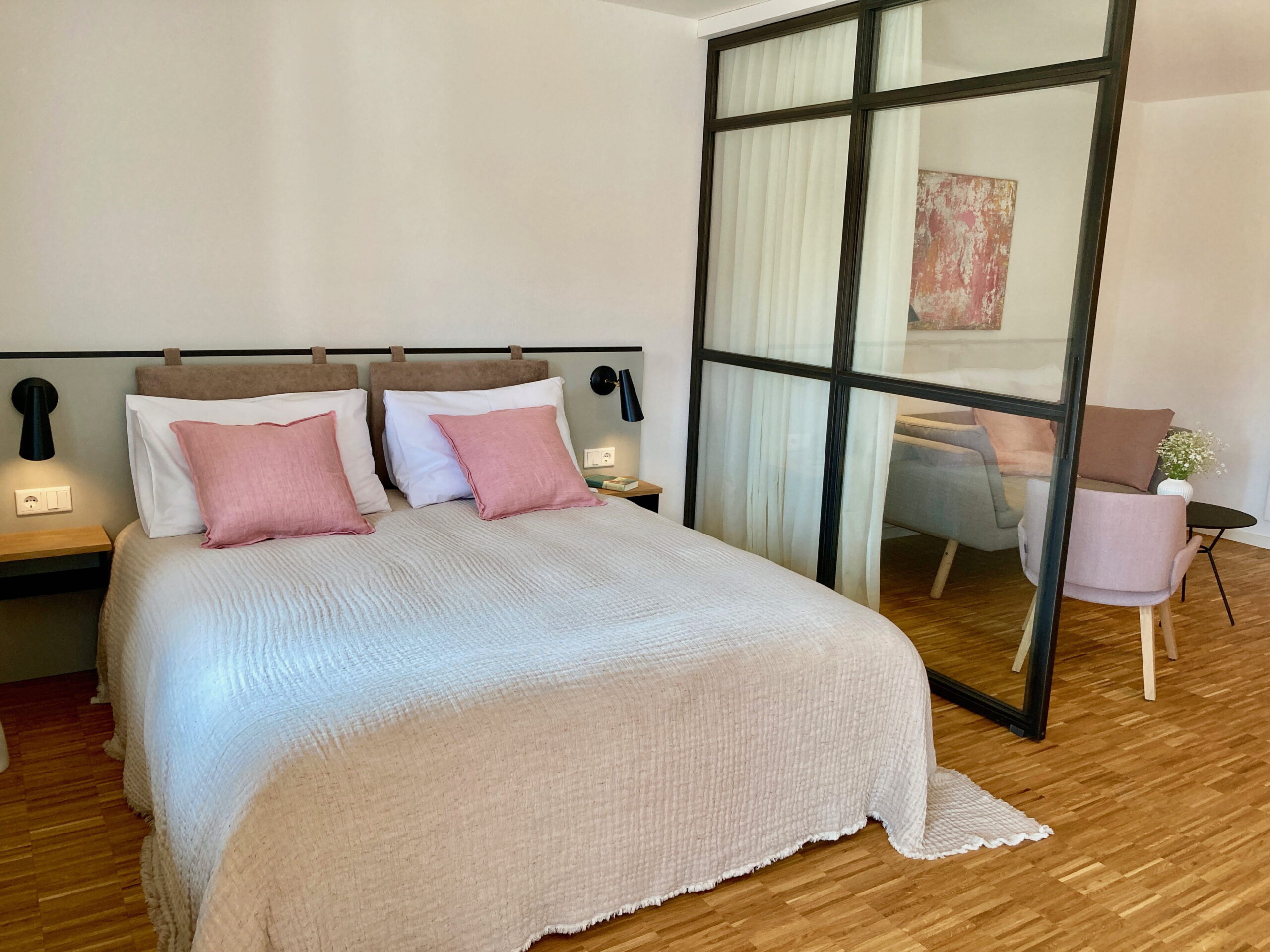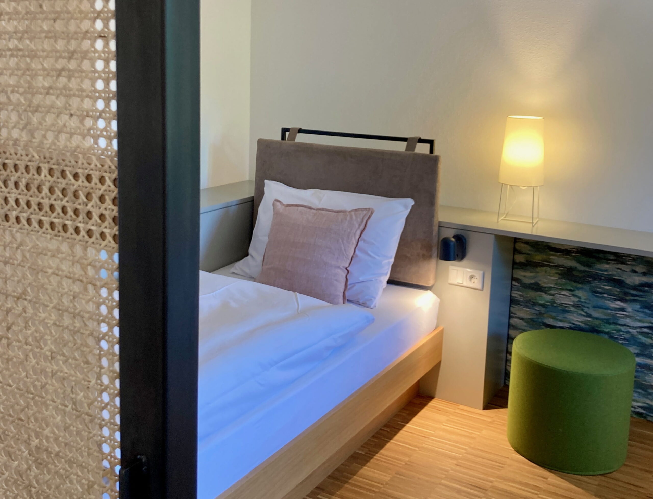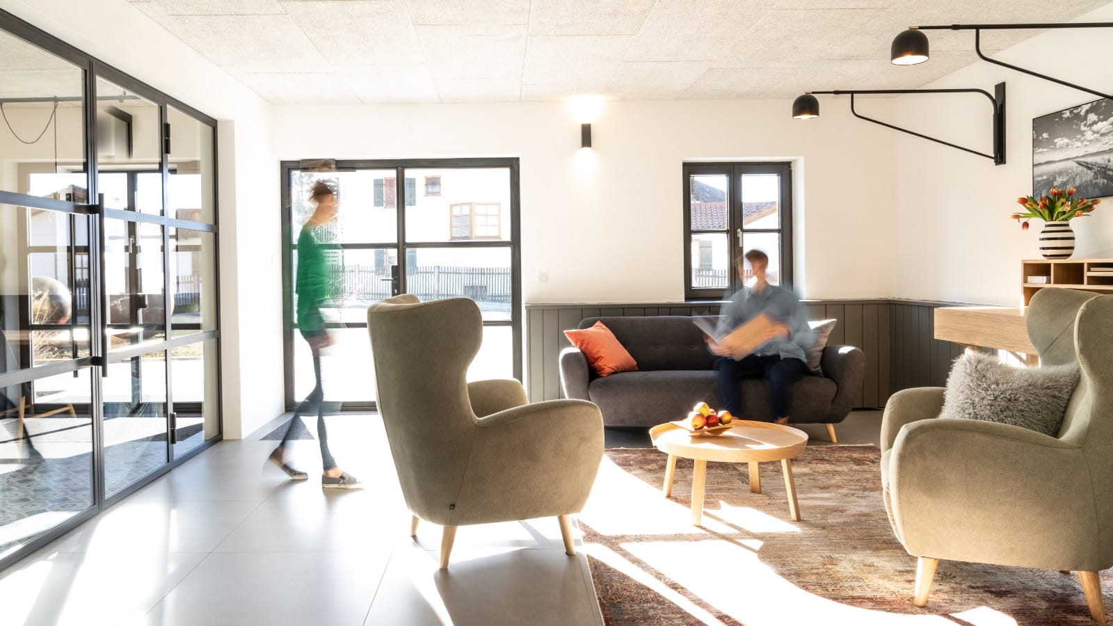 In 2019 werd de familieboerderij met veel zorg en liefde door Christina en Paul Grundler omgebouwd tot guesthouse. Met veel oog voor detail werd de inrichting nauwkeurig bepaald. Het resultaat? Traditie meets modern design. Veel hout, glas en staal, mooie tegels, prachtige kleuren en stoffen. Designklassiekers staan te pronken naast vintage stukken. Het past allemaal zo goed, alsof het niet anders had gekund. Grundlers heeft een fijne kalme en luxe sfeer waar jij je in kunt onderdompelen.