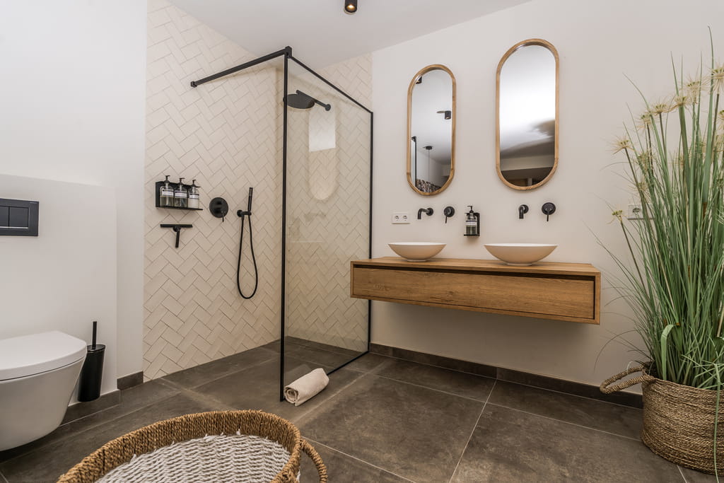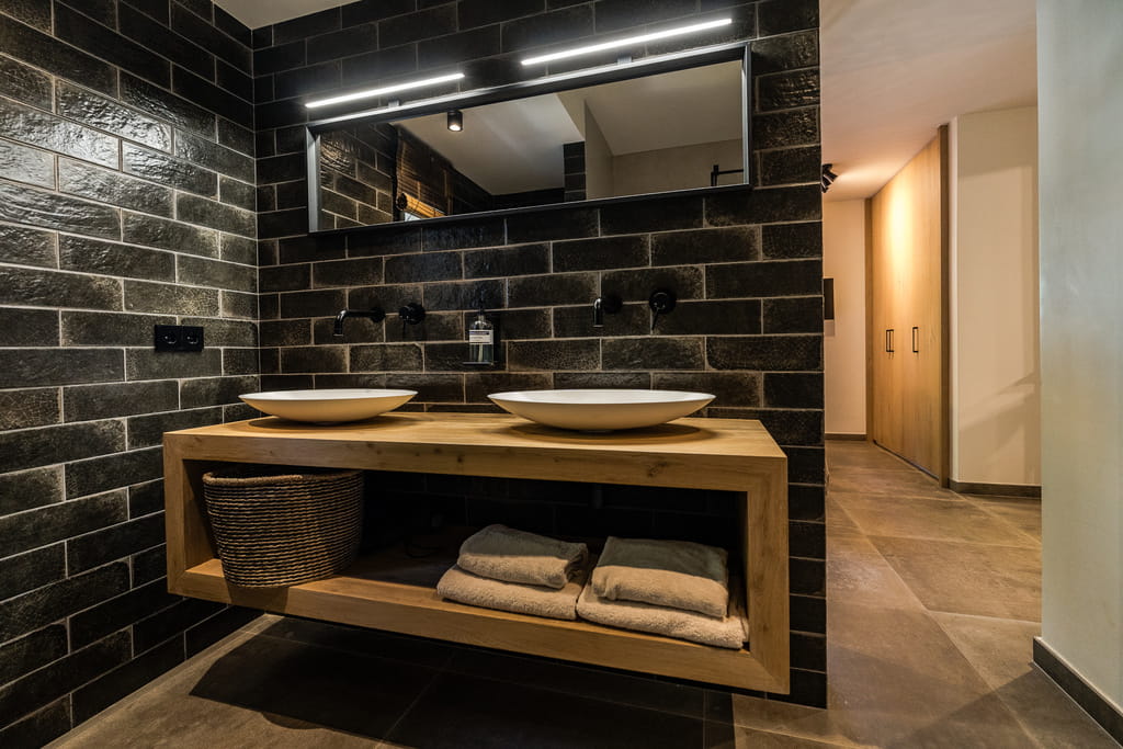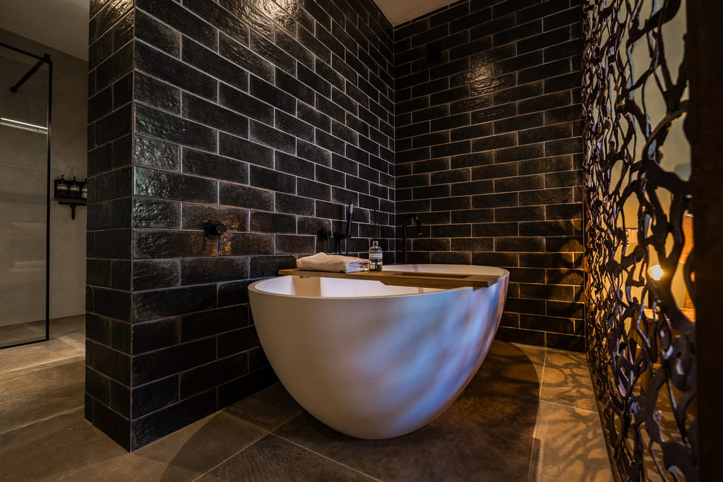 De villa is zo’n 250 m2 en heeft een ruime woonkeuken met eetkamer, een living met zithoek bij de open haard – heerlijk in het voor- en naseizoen – vijf slaapkamers met en-suite badkamers. Twee badkamers hebben een ligbad. Alles straalt kwaliteit en luxe uit. Fijne bad- en bedlinnen en verzorgingsproducten, oh wat een weelde! Het huis heeft ook een laundry met wasmachine en droger. Wel zo prettig bij een langer verblijf.