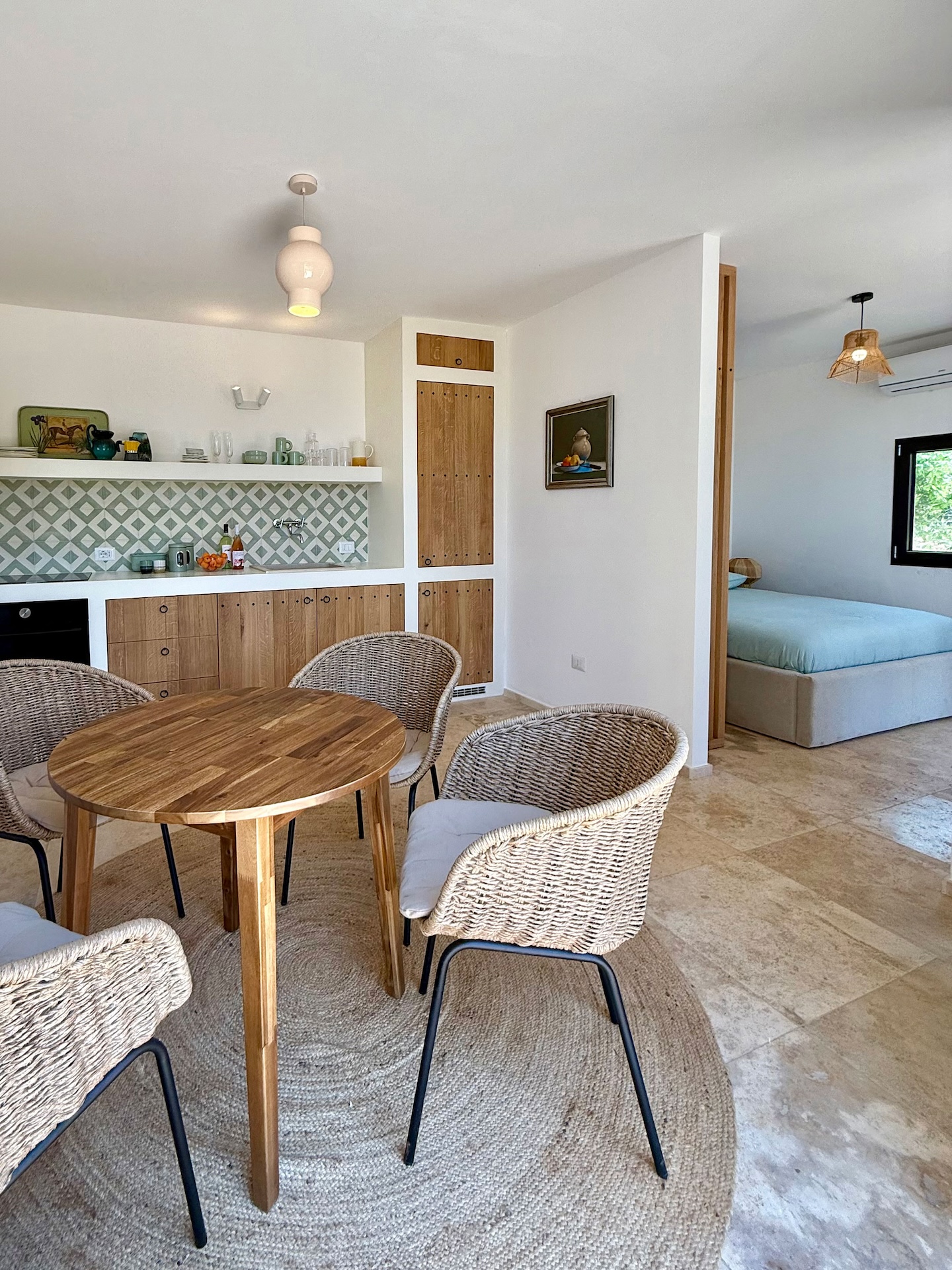 Voor groepen tot 14 personen huur je alle vier de huizen samen – een ideale mix van privacy en samenzijn. Ontbijten op je eigen terras, later samen bij het zwembad dat helemaal van jullie is, dineren onder de sterren, hangmatten, buitenkeuken, wijn… Met vijf slaapkamers, vier keukens en overal lounge plekken en schaduw is dit perfect voor vriendengroepen, retreats of drie generaties samen. Ieder zijn rust, en toch bij elkaar.