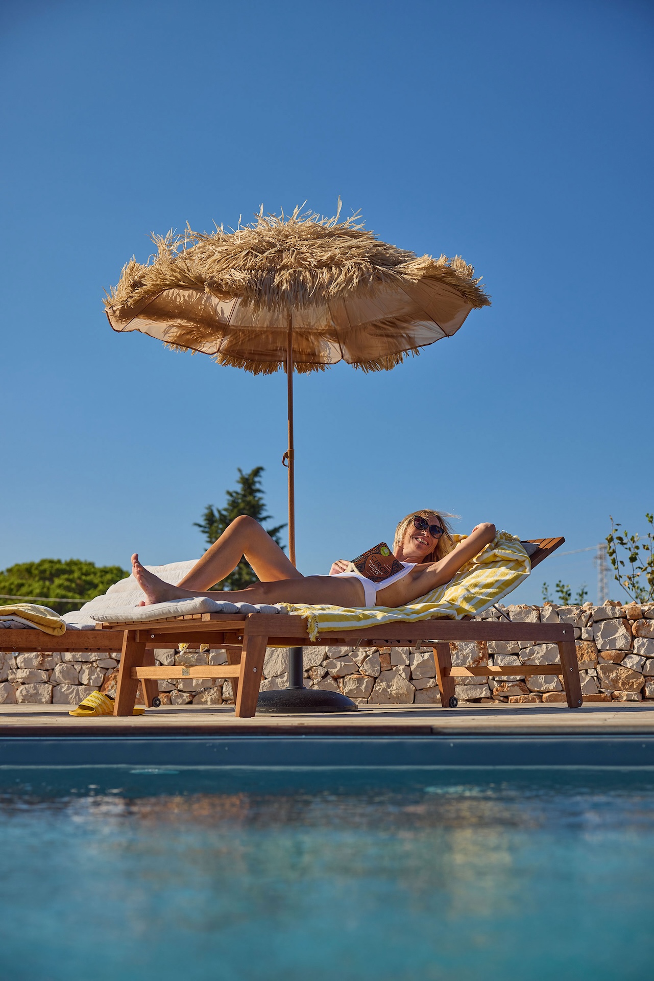 Casa di Pini is de grootste van de vier voor 4-6 personen – licht, ruim, ideaal voor een gezin of vrienden, met twee slaapkamers en een terras met eigen plunge pool (hello summer!). De andere drie huizen (Casa di Uva, Casa di Mandorla en Casa di Gelso) hebben elk één slaapkamer, een fijne living met plek voor 2 extra personen op de luxe slaapbank (in Casa di Mandorla en Uva) en een privéterras waar je tot laat buiten zit.