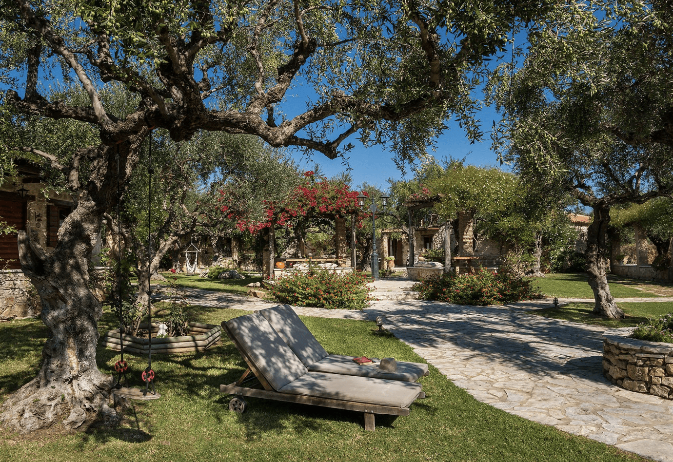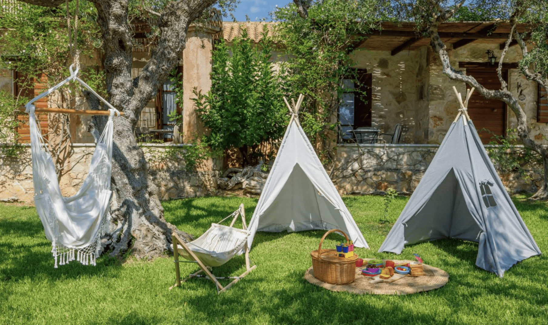 De prachtige ruime tuin van het complex is een walhalla voor kinderen. Er is ook een schommel en een peuterbad. Zowel jong als oud vermaken zich hier prima want jij kan lekker luieren bij het zwembad – met uitzicht op zee – of in de hangmat. Klaar met luieren? Neem yogalessen of geniet van een massage in de tuin. Er zijn verschillende terrassen en zitjes verspreid over het terrein waar je prettig een drankje kan doen.