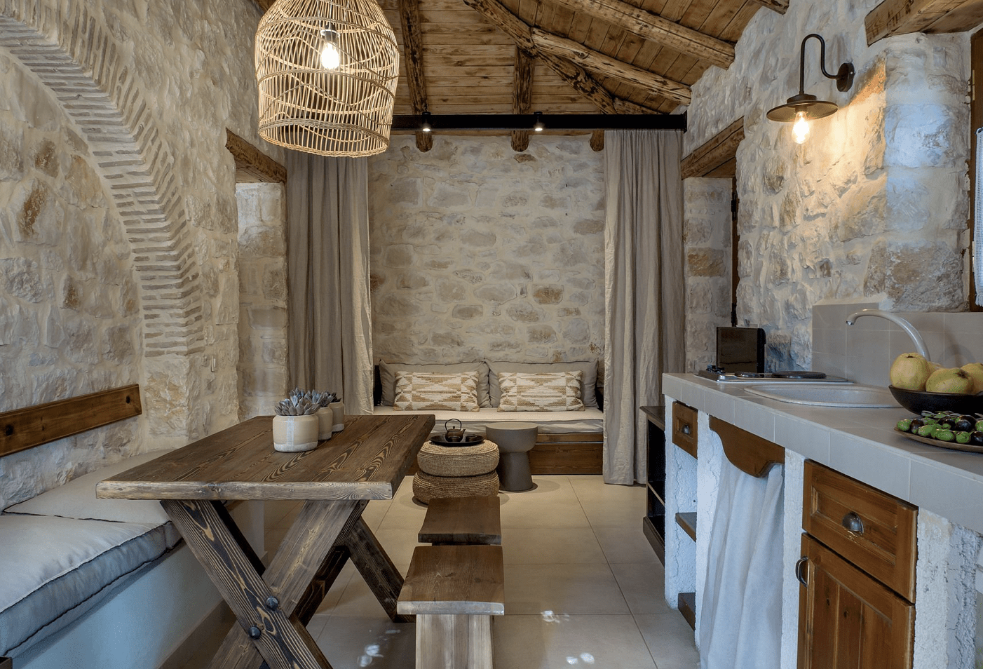 Er zijn slechts 18 accommodaties in de vorm van studio’s, appartementen en villa’s. Alle zijn sfeervol ingericht en van alle gemakken voorzien. Geen zin om zelf te koken? Geniet dan van het lekkers dat het restaurant op het domein te bieden heeft.