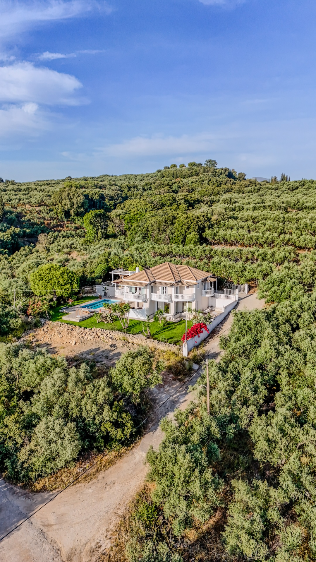 Op een groene heuvel vol olijfbomen, met het blauw van de Ionische Zee aan je voeten, ligt Villa Maroun. Een stijlvolle villa voor acht personen op Zakynthos. Drie slaapkamers, een privézwembad en genoeg plek om te loungen, koken, tafelen en simpelweg te genieten van het uitzicht. Je zit hier op zeven minuten van het strand, maar stiekem wil je gewoon hier blijven – zo fijn voelt het.