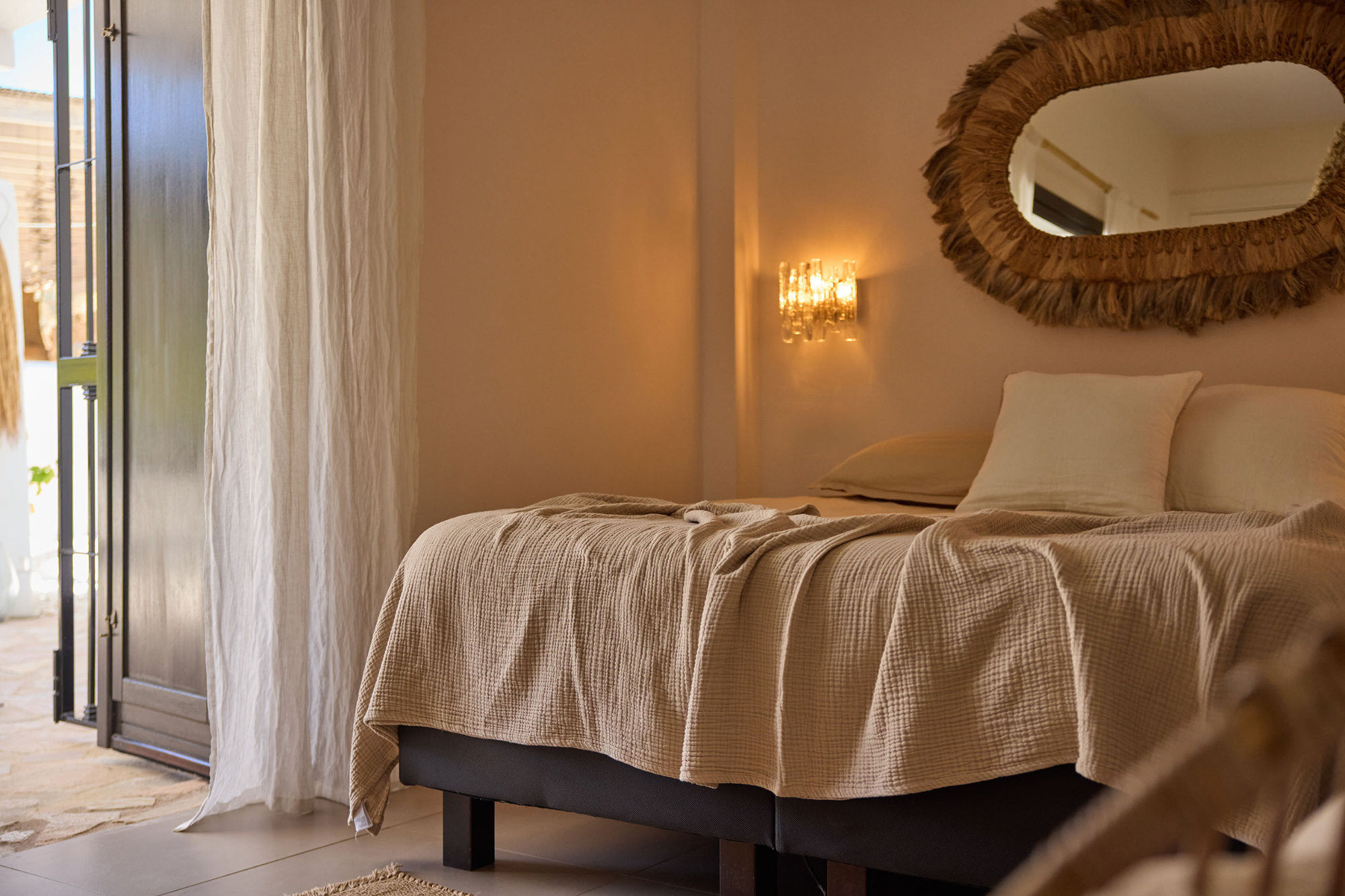 Simone, de eigenaresse, heeft een talent waar je u tegen zegt. Ze tovert huizen om tot stijlvolle sanctuaries met een ziel – en Villa Pepita is daar een perfect voorbeeld van. Haar stijl? Bohemien chique. Oftewel: natuurlijke materialen, warme tinten, handgemaakte objecten, vintage parels en kunst met karakter. Werkelijk prachtig!