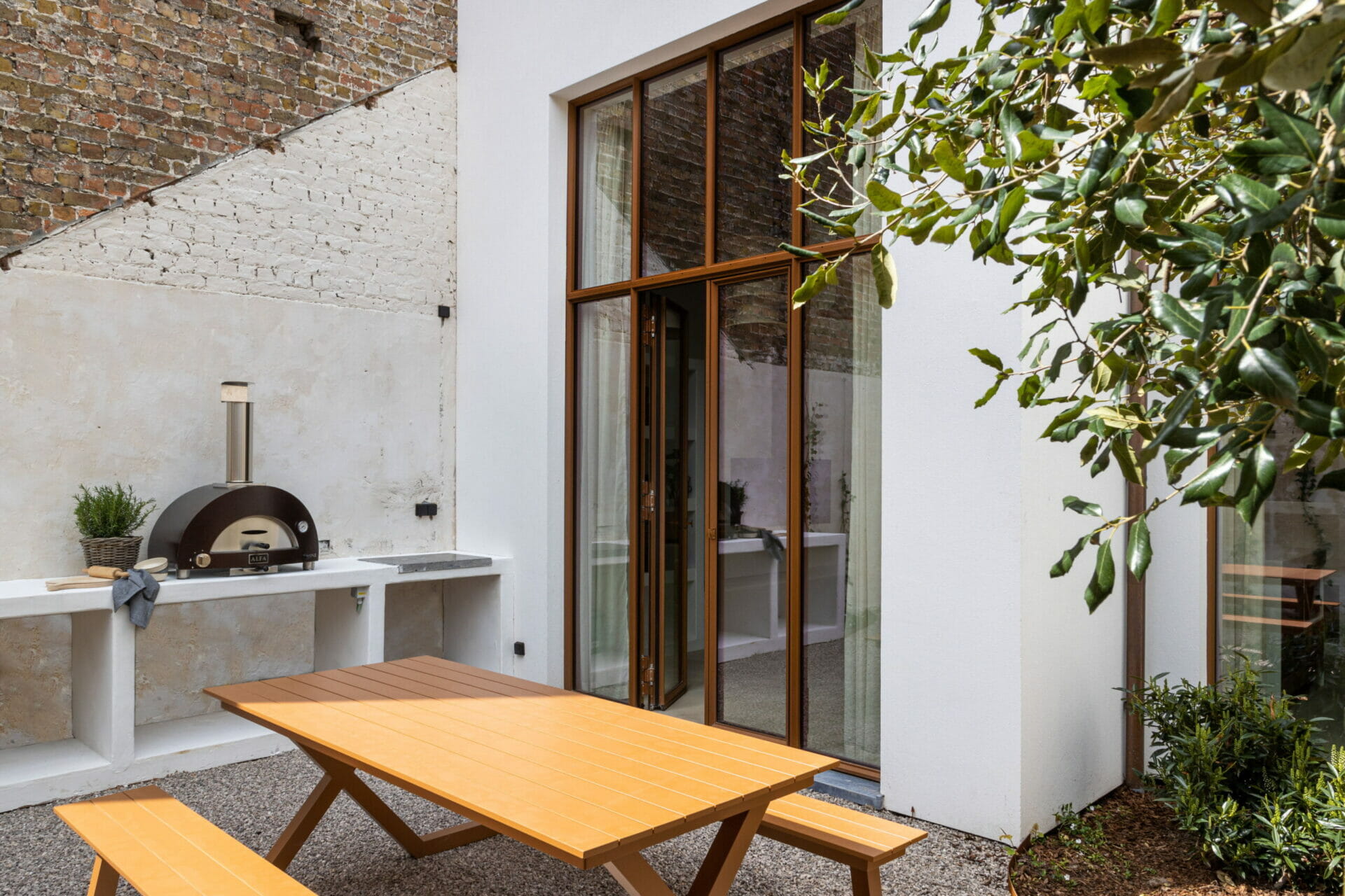 Bijzonder knap hoe Elisabethstraat 8 ingesteld is op een verblijf van 24 gasten en toch ongelooflijk mooi is ingericht en gestyled. Zoveel gasten in stijl aan tafel, ga er maar aan staan. Niets geen praktisch non-meubelair. Nee, een prachtige tafel waar mijn hart een sprongetje van maakt. Grote open keuken met alles erop en eraan en de sfeervolle gashaard tops it off! De gezellige aansluitende stadstuin is een heerlijke plek om te borrelen en staat een pizzaoven. In het souterrain is een gezellige living – ja echt, plek voor iedereen! – met een grote tv. Oh en er is ook nog een wasruimte aanwezig. Wel zo praktisch. En alles is even mooi. Ieder groot en klein detail.